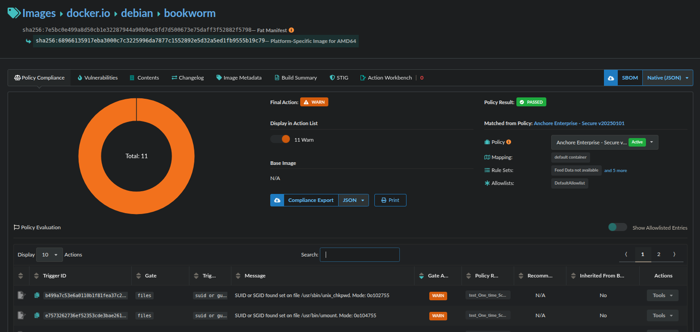 Anchore Enterprise uses its component analysis capabilities to inspect a container image and create a comprehensive SBOM.