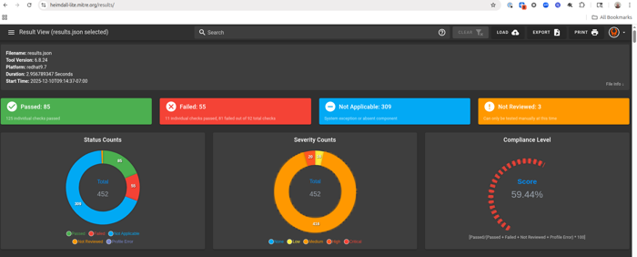 This guide provides examples of how to scan a container with DISA STIGs and import the data into Heimdall for a visualization or STIGViewer to create a checklist to provide as an ATO artifact.
