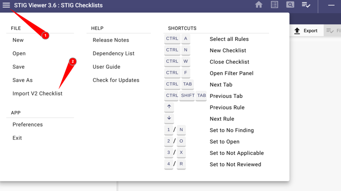 - Click Import V2 Checklist and upload