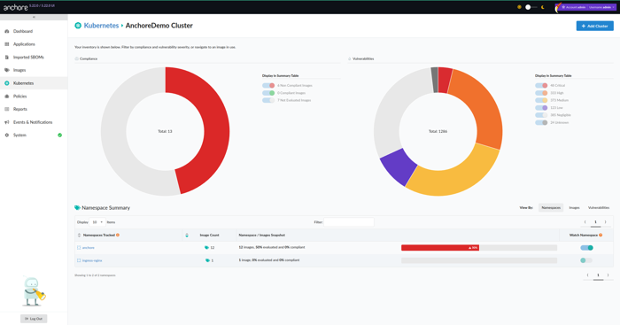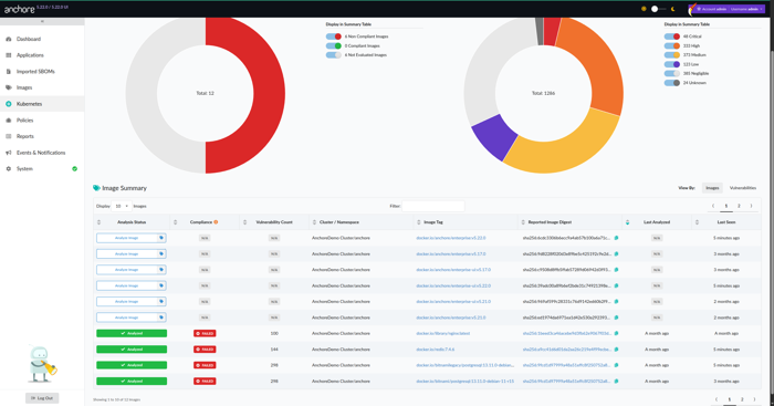 As organizations scale Kubernetes deployments, Anchore Enterprise enables continuous monitoring of runtime images, automated policy evaluation, and actionable reporting to strengthen workload hardening and operational compliance. Through runtime inventory and policy enforcement, teams can standardize security across clusters, surface risk early, and ensure that live container images meet organizational and regulatory requirements.