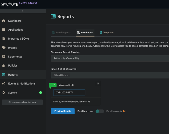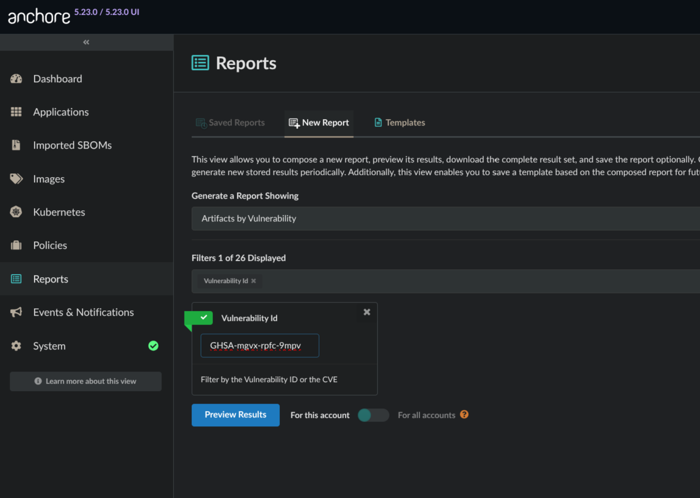 /query/vulnerabilities in https://docs.anchore.com/current/docs/api/reference/If you know the vulnerability ID, which could be either a CVE, GHSA, or other identifier, you can utilize the native reporting capability in Anchore Enterprise.