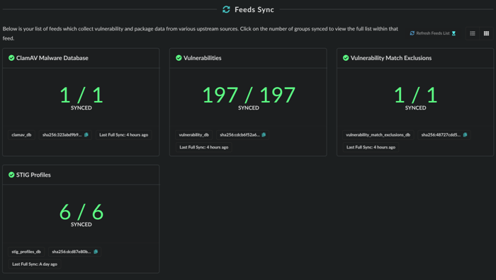 Feed sync status can also be found in the Anchore Enterprise UI under System and Feeds Sync.