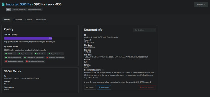 This command creates an SBOM and stores it under the Imported SBOMs section of the UI. You can view and download this SBOM by navigating to that section of the UI.