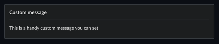 message: "This is a handy custom message you can set"